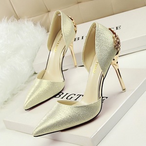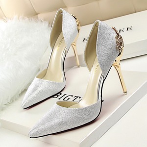 流行元素:韩版 优雅 雕花金属跟 金属跟 电镀跟 婚鞋 中空 镂空