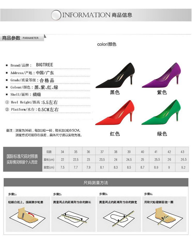 18249 - A2 han edition age season fashion contracted fine with shallow mouth pointed satin heels for women's shoes with